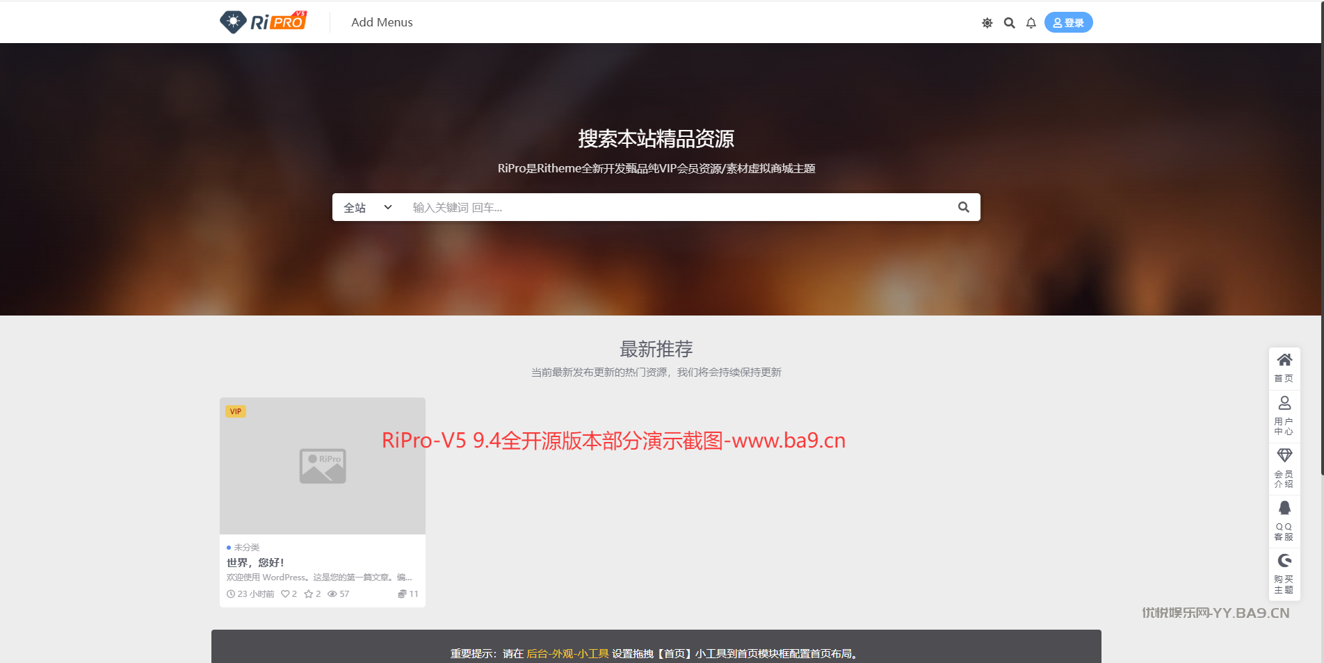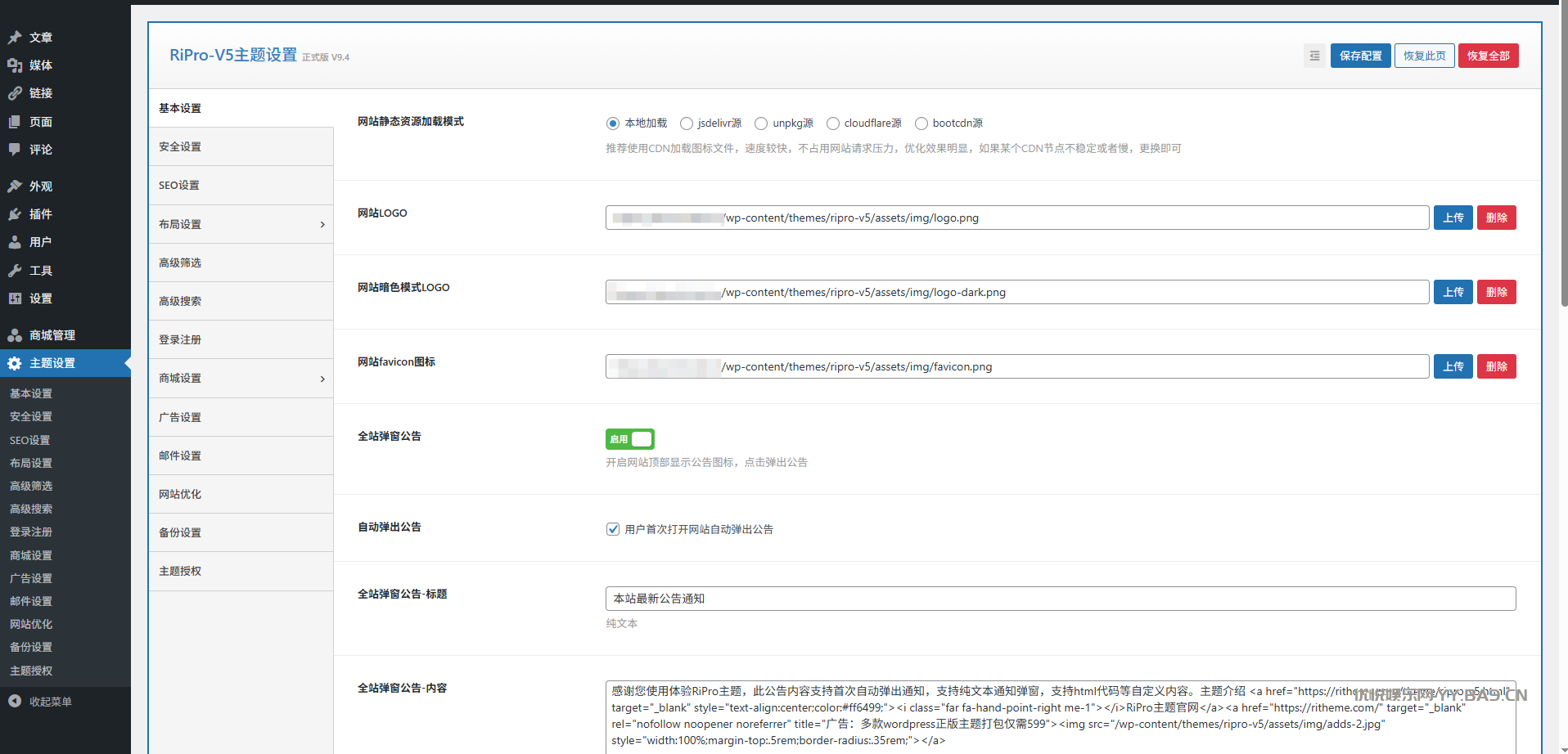 日主题RiPro-V5 9.4主题源码,是一款备受用户关注的WordPress主题资源。这款9.4版本全开源源码是经swoole逆向反编译出来的,其核心代码/inc/core/template-core-8.0.php,注:template-core-8.0.php可命名为其他名称,如template-core.php,只需在主题根目录下的functions.php修改下代码即可