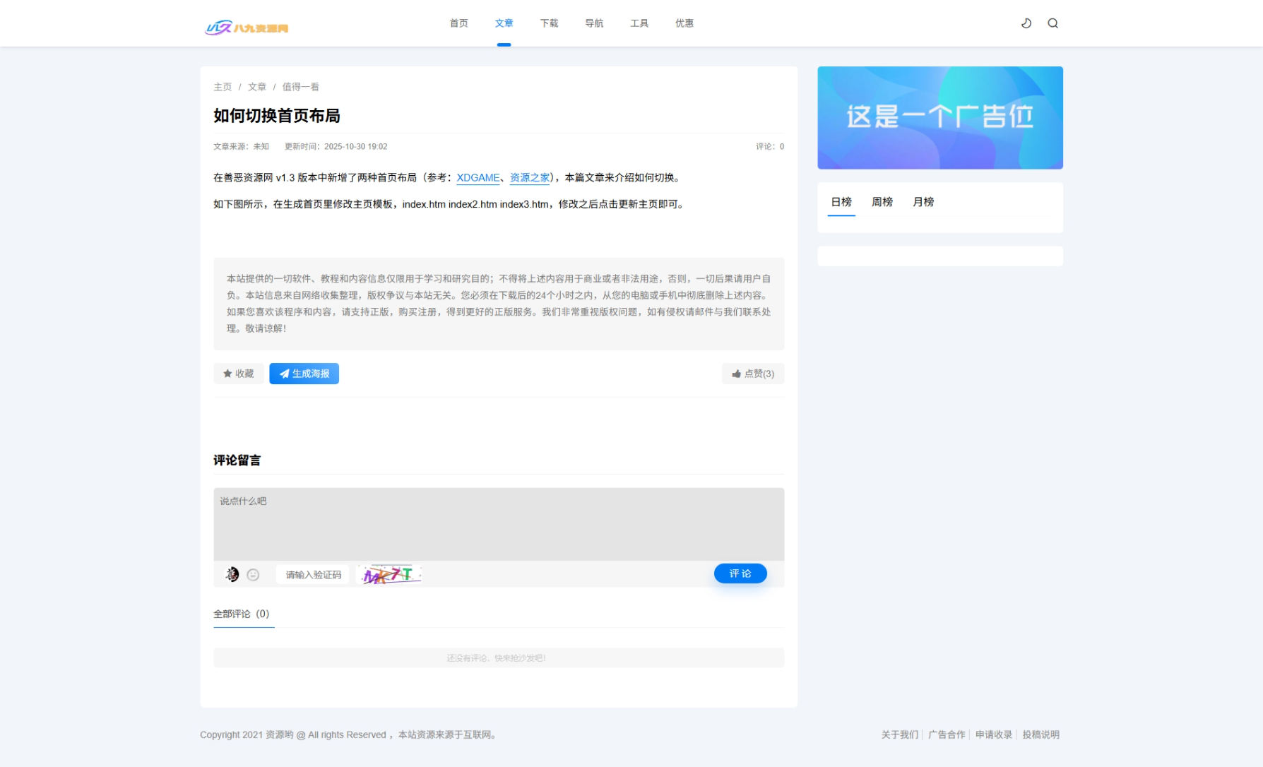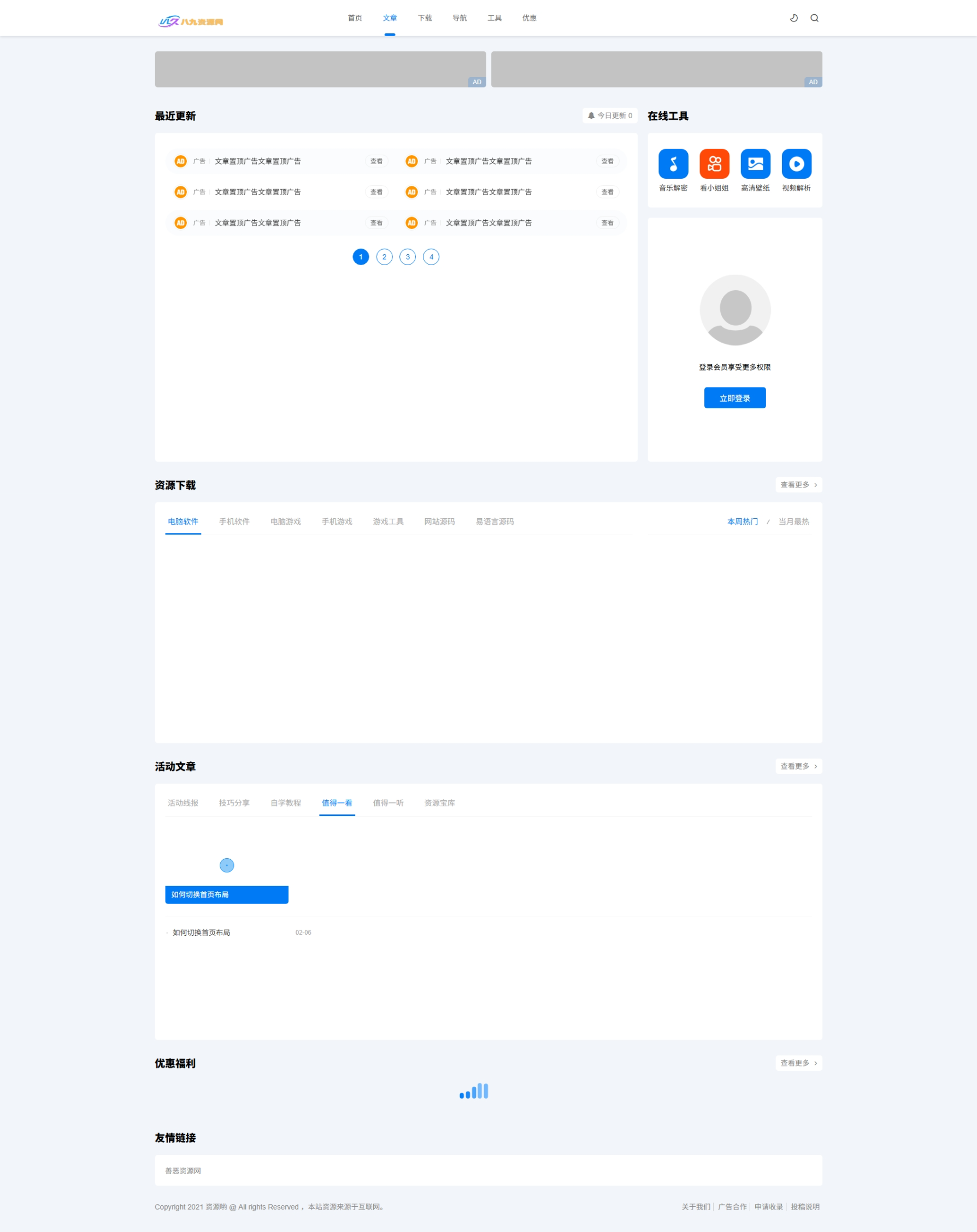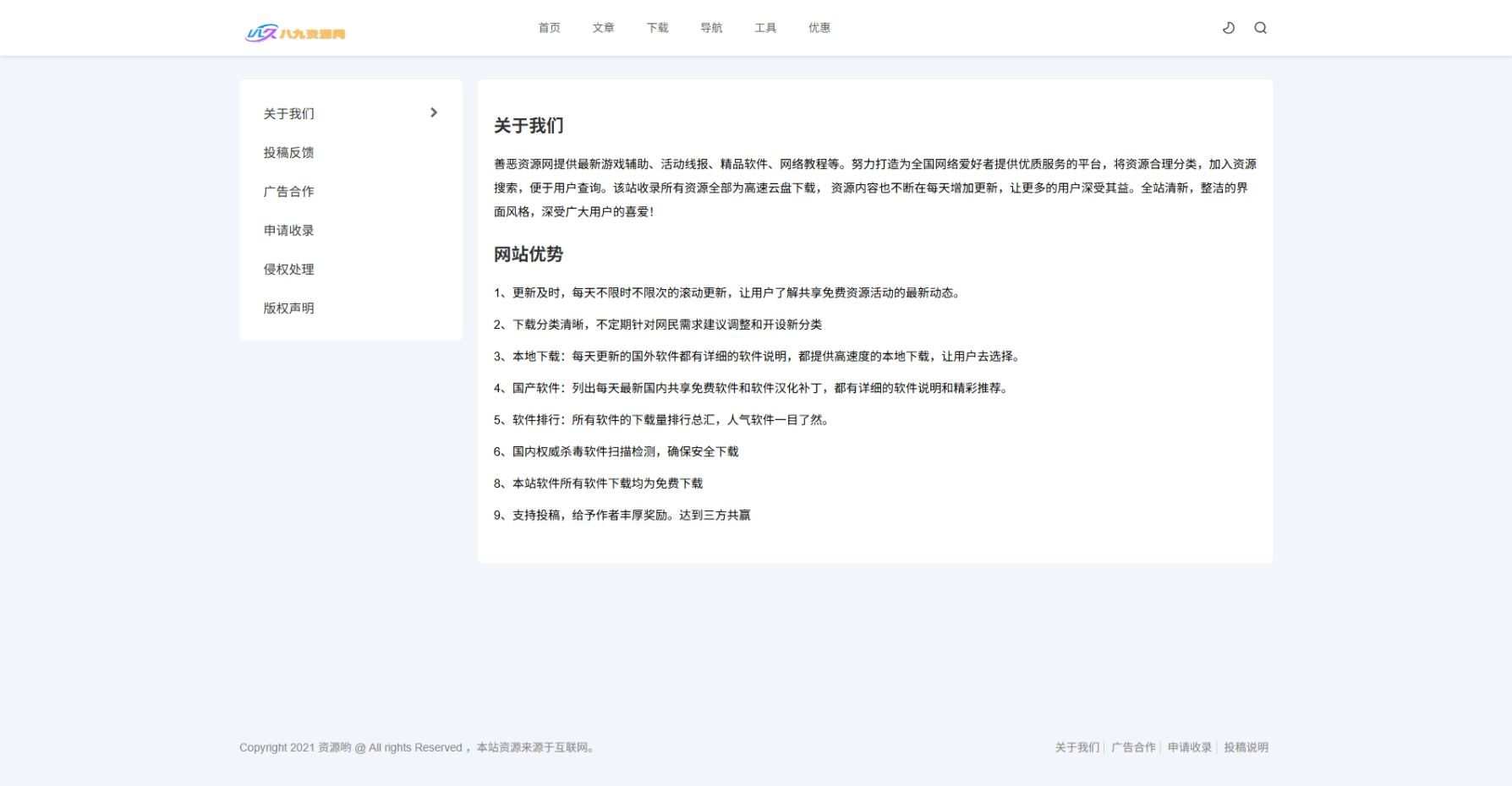 很早之前用来建站的一款源码了,采用的是织梦CMS程序,之前我做网站的时候很喜欢用的一款建站程序,仿站也很简单,直接扒模板套标签,现在已经很少接触织梦CMS程序了,这款资源网系统就是用的织梦CMS做出来的,最开始是看到小刀做的XDGAME站点,还可以,就给模板扒过来了,在上面做了些整改,集成了文章+下载+网址导航+商品的一款不错的程序,还集成了QQ、微信以及新浪微博的快捷登录接口。