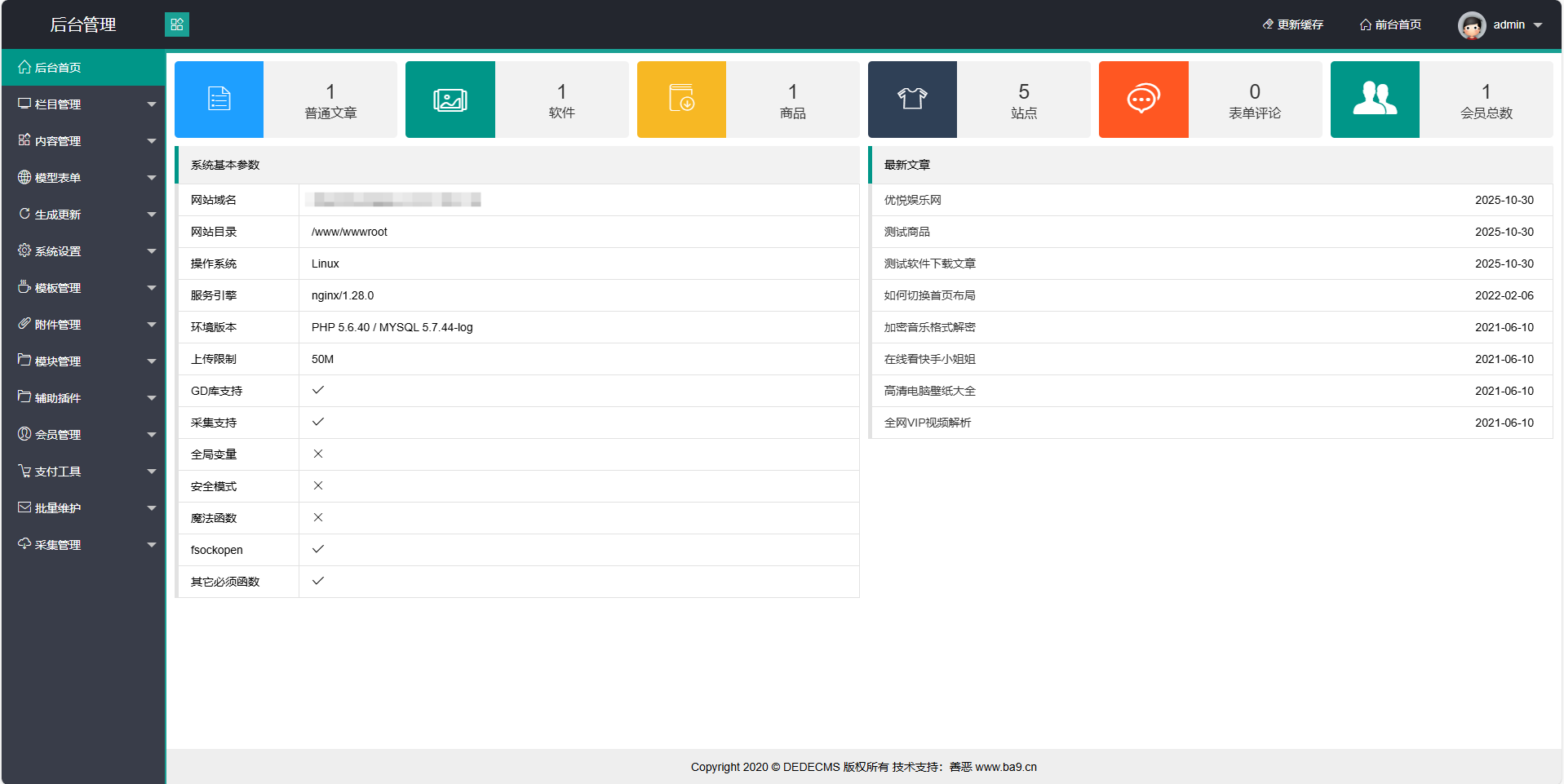 6、完成以上步骤后,访问你的域名/admin,默认账号 admin 默认密码 admin 登录到后台