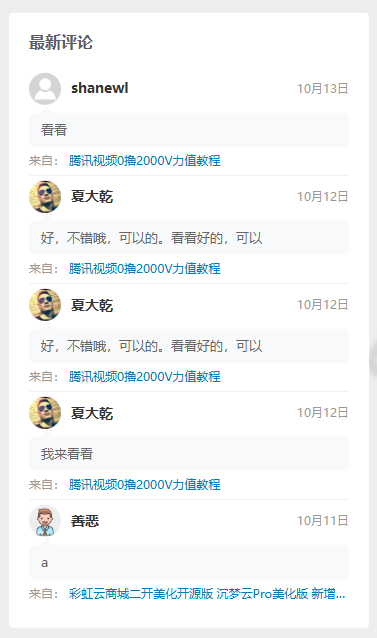 新增:边栏最新评论小工具(在WP后台的:外观-小工具-【SE边栏】用户最新评论,拖动到文章侧边栏工具里即可)