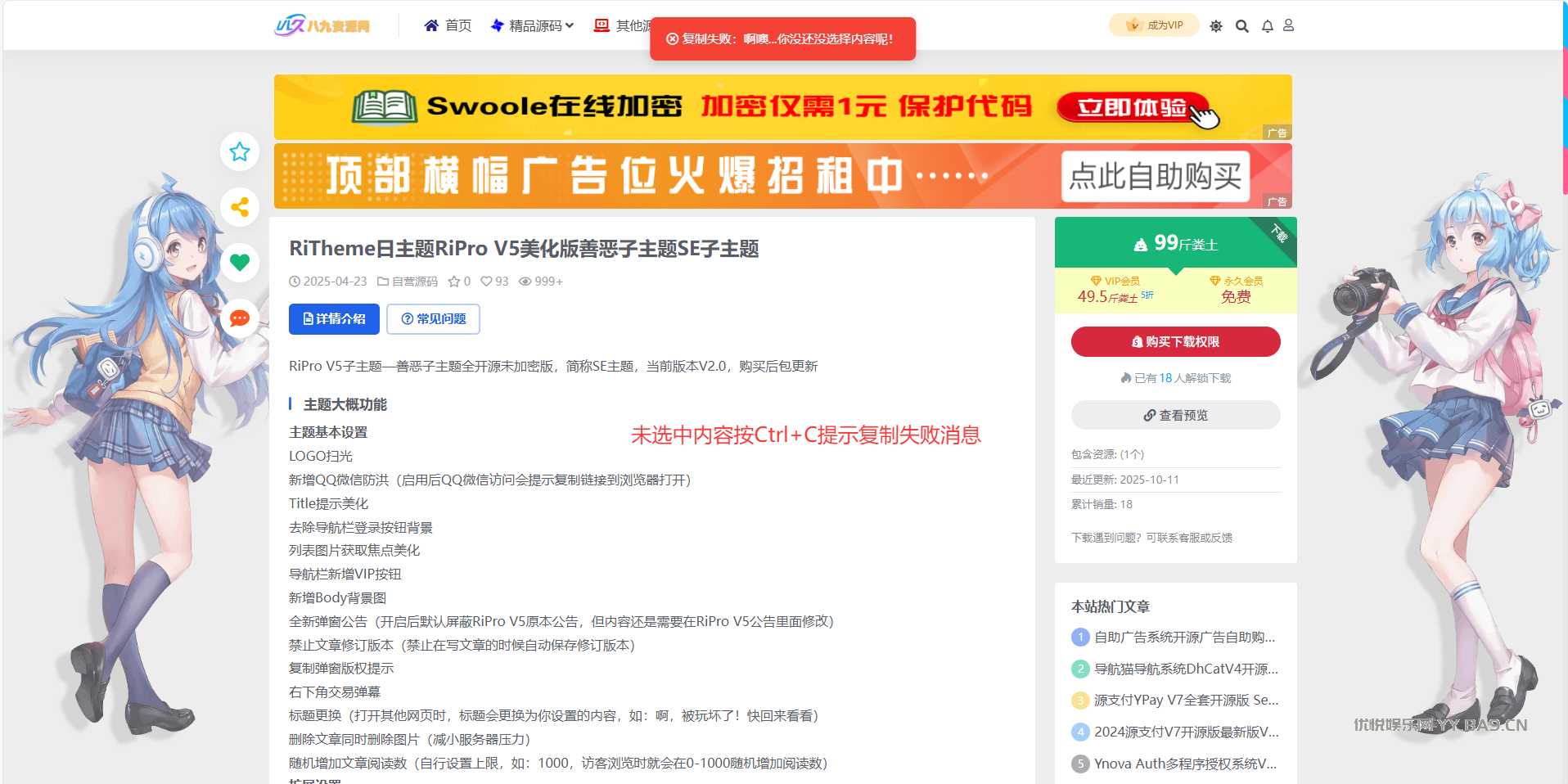 RiPro V5子主题—善恶子主题全开源未加密版,简称SE主题,当前版本V2.0,购买后包更新