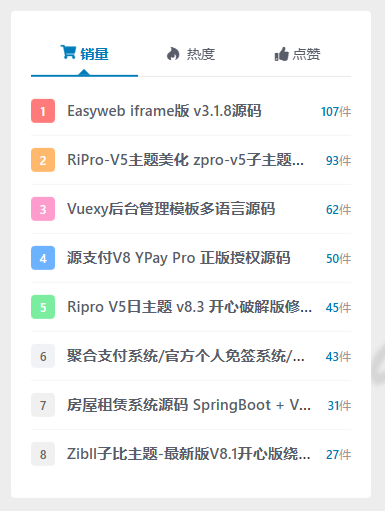新增:文章侧边栏销量/热度/点赞文章排行版