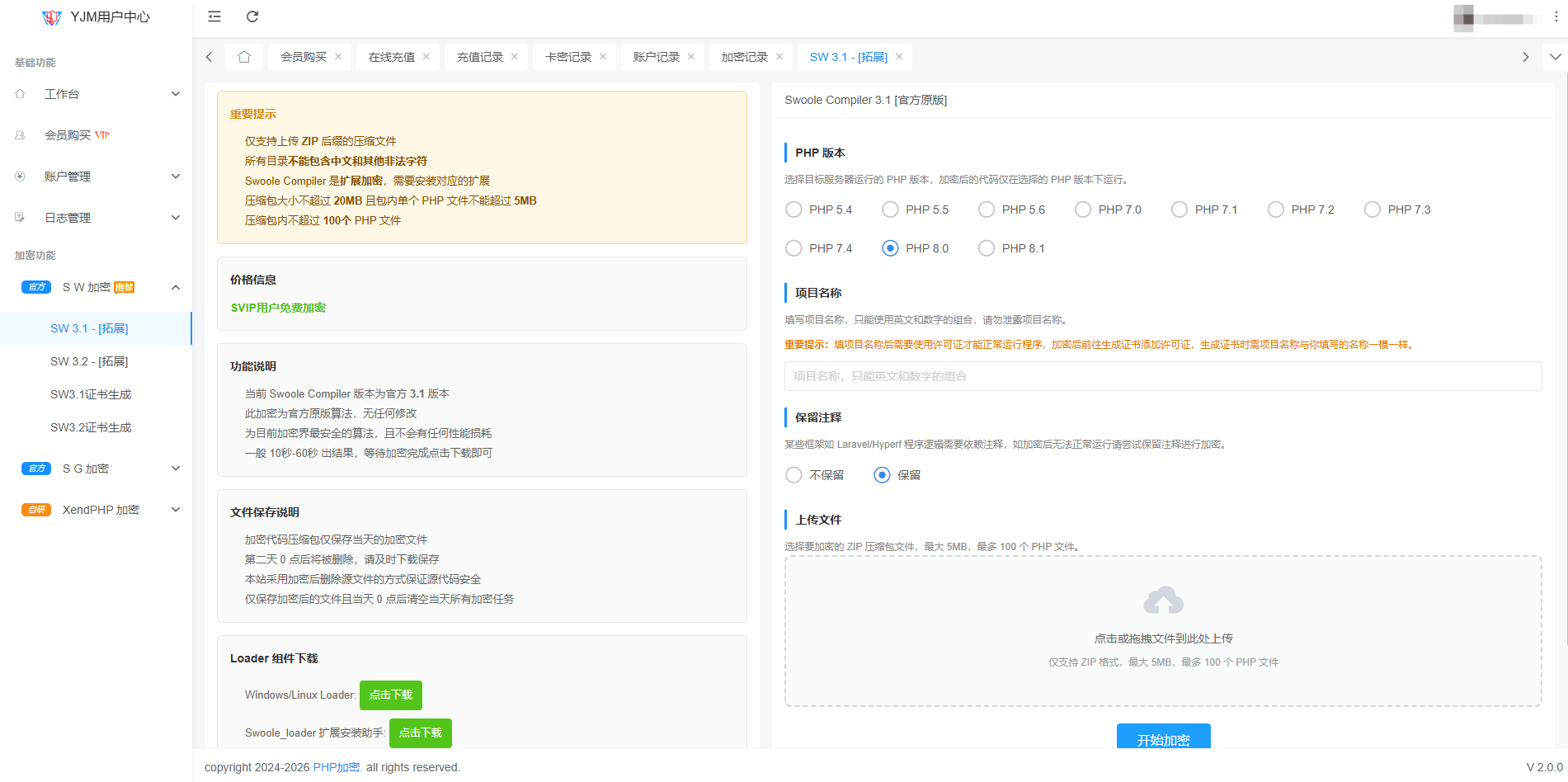 2.SWC3.2加密器更新至SWC3.2.1 已支持PHP8.4