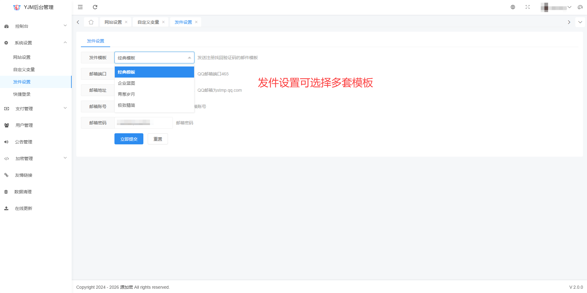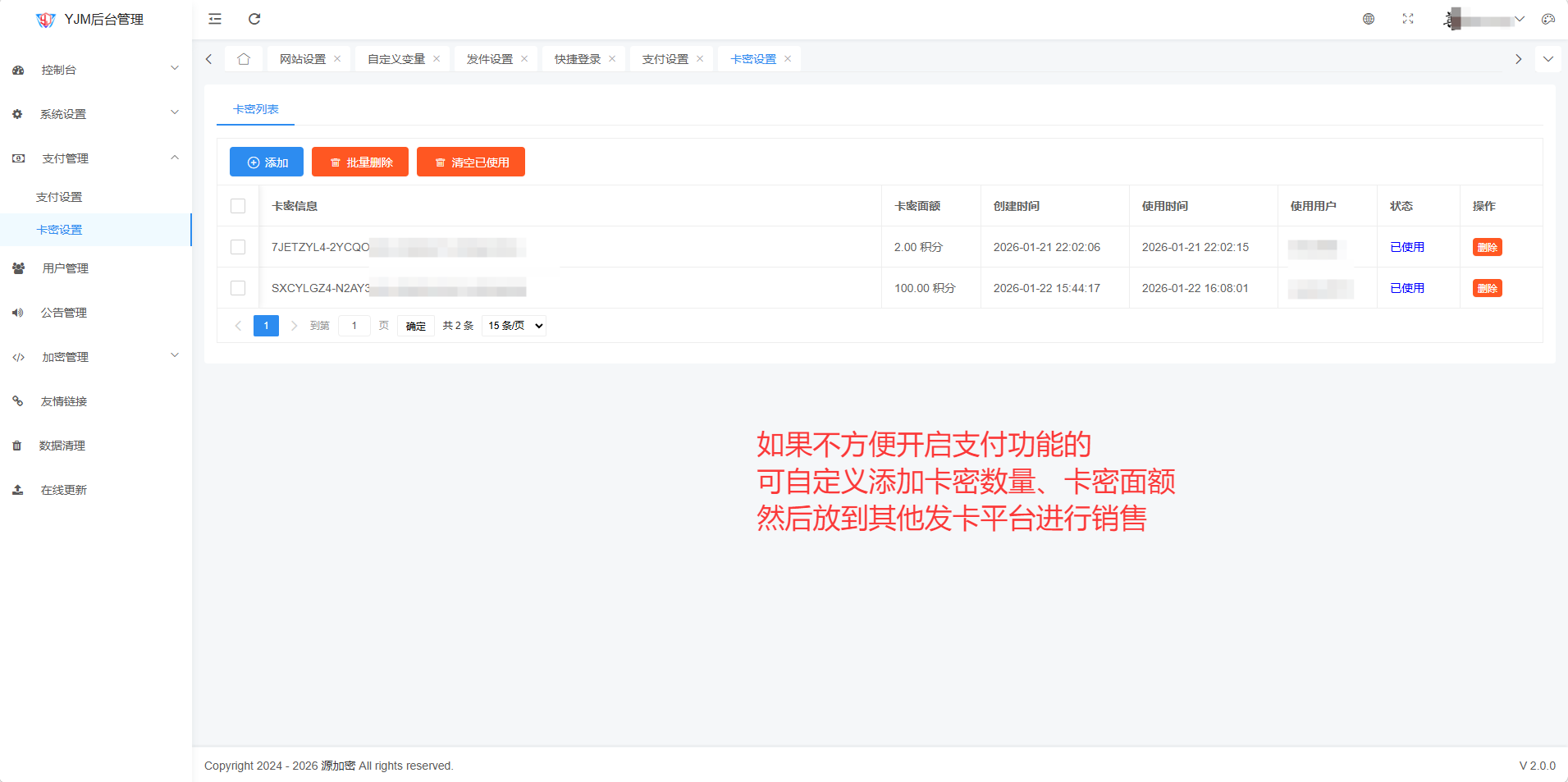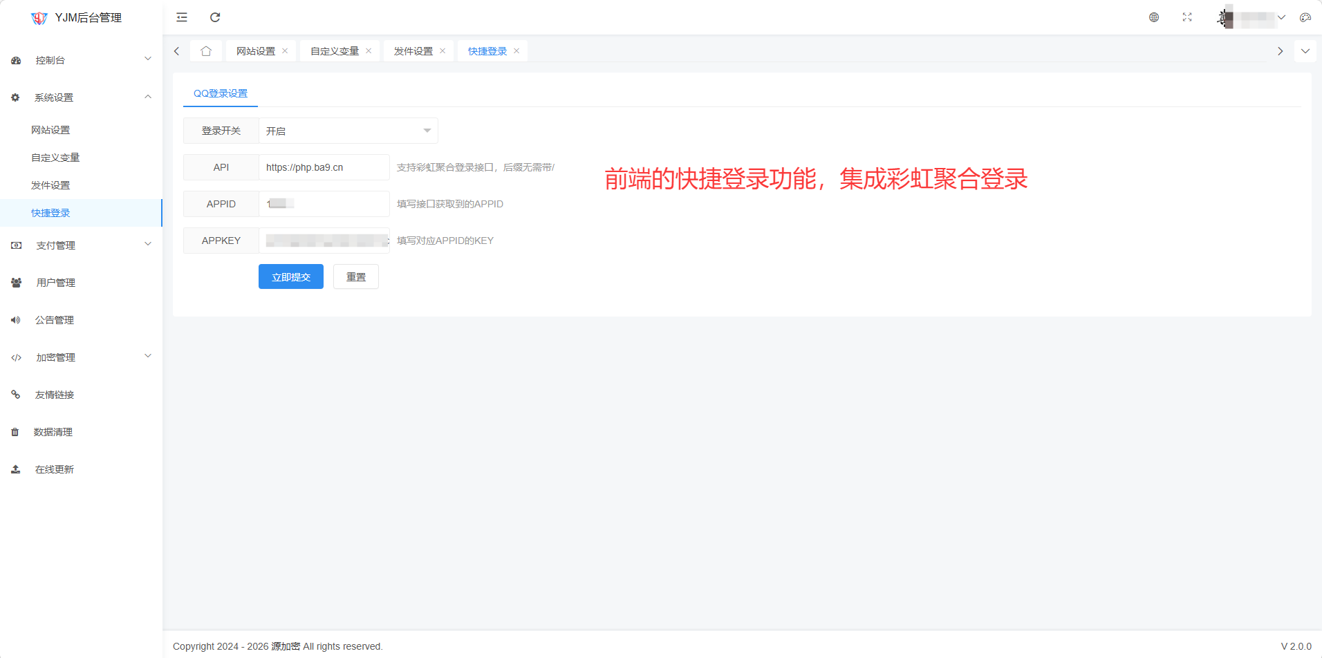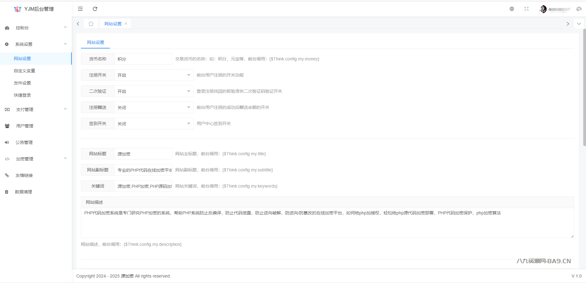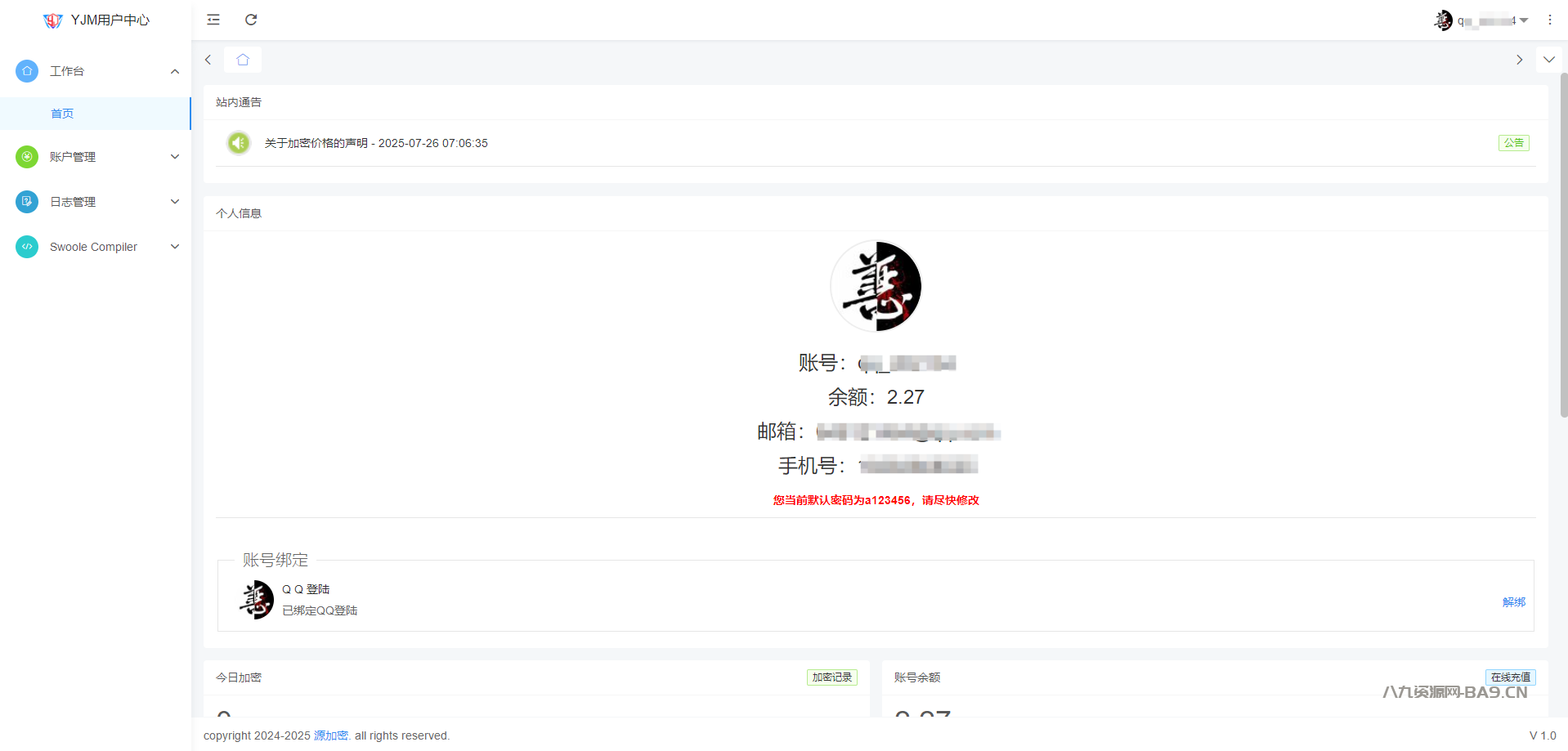 《YJM源加密系统》受国家计算机软件著作权保护(登记号: 2025SR1744433), 禁止传播、破解、盗版、上传、分享产品源代码、二次转售等,违者必追究法律责任。