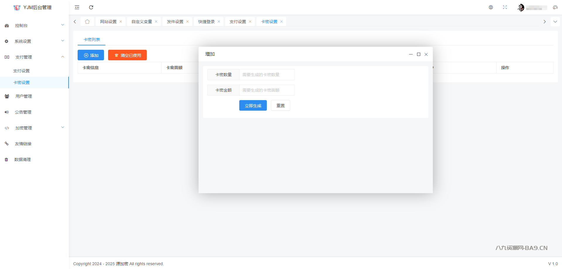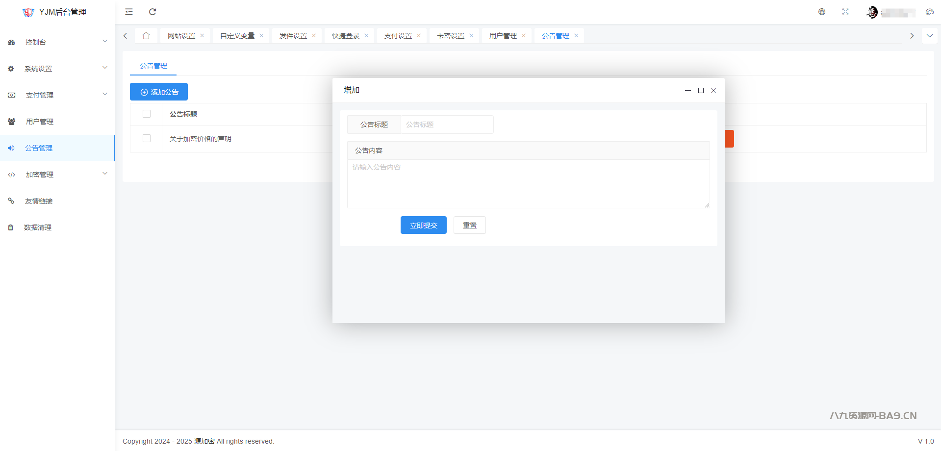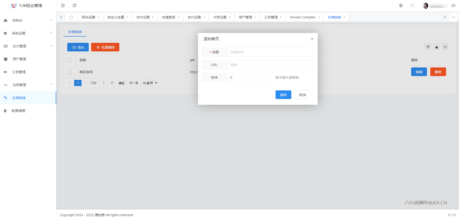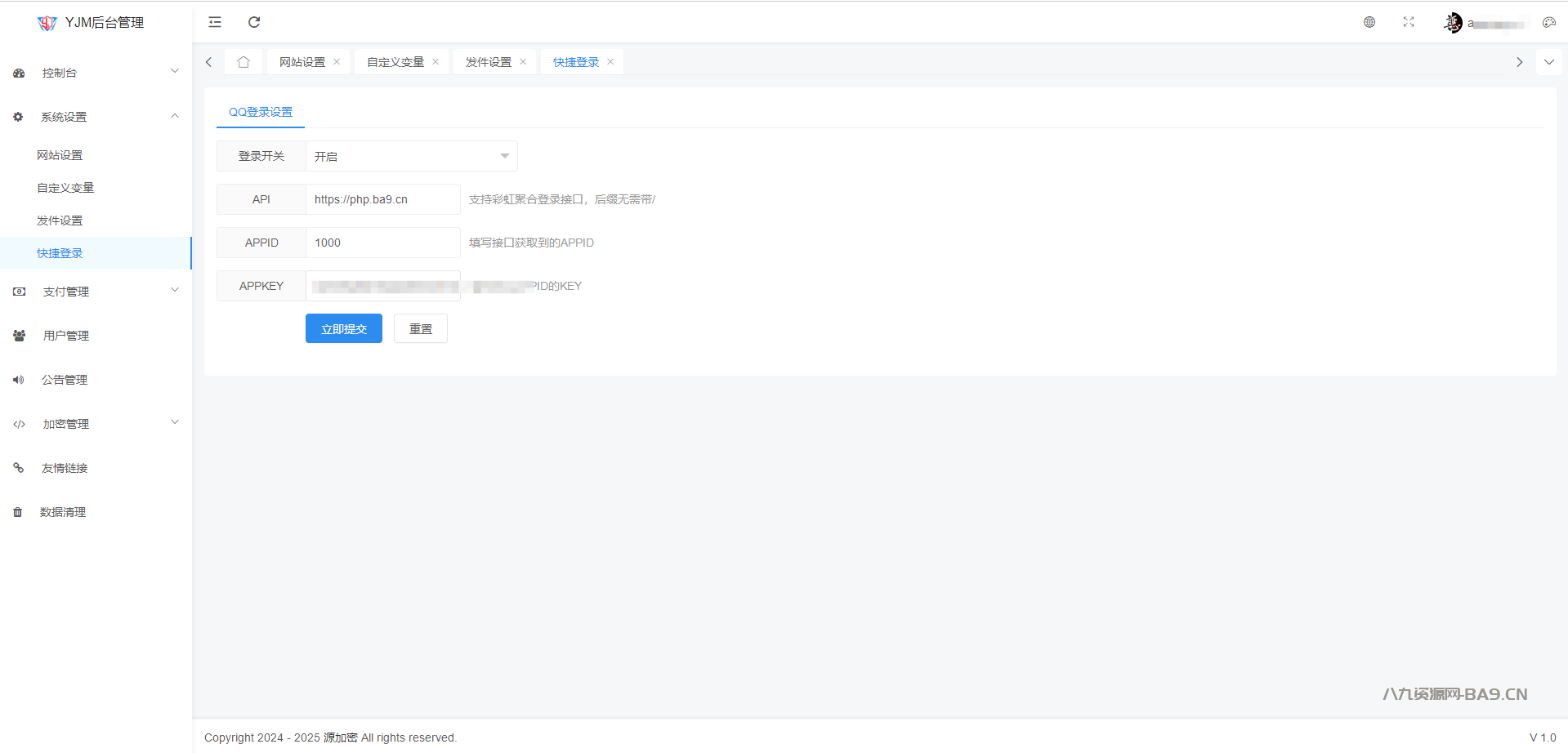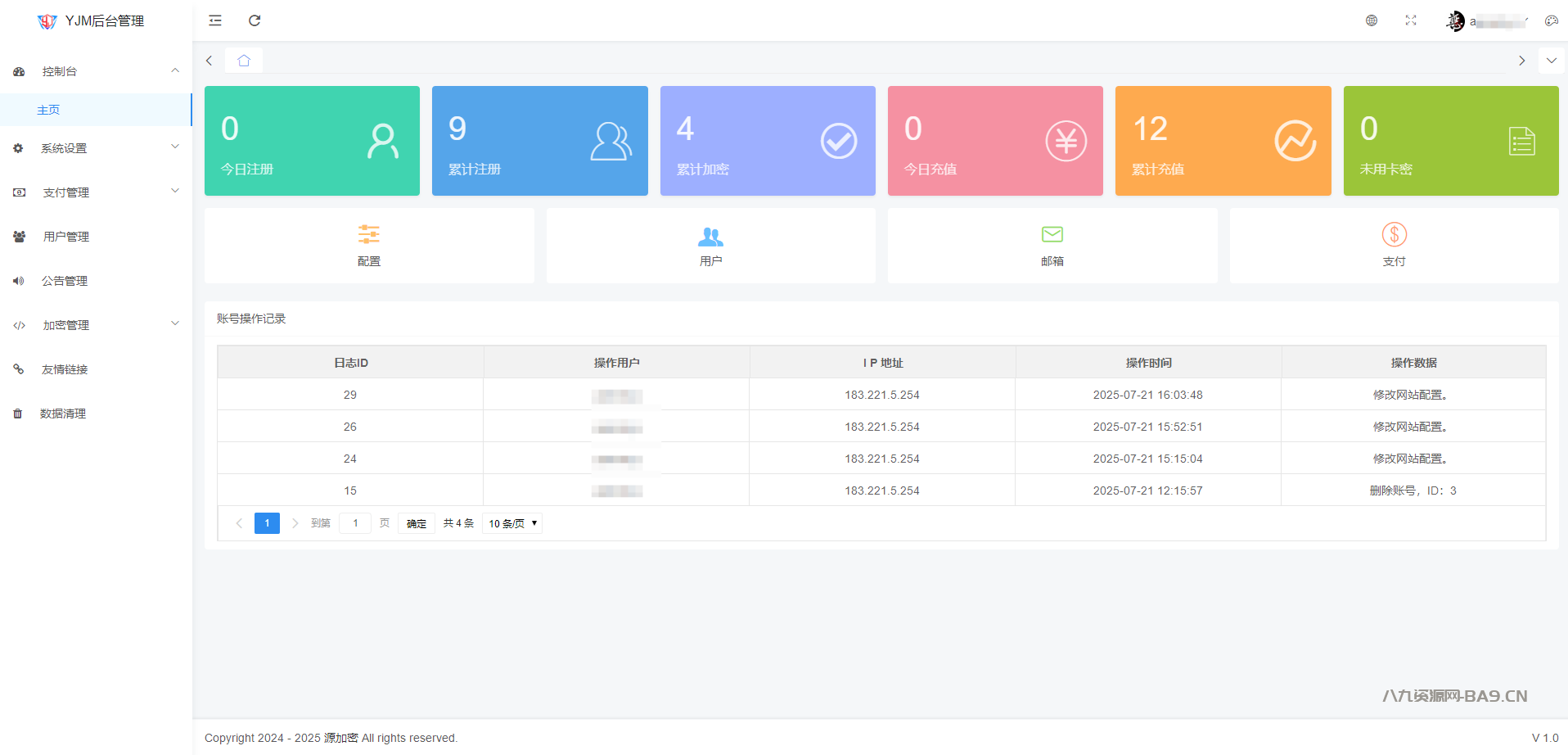 《YJM源加密系统》受国家计算机软件著作权保护(登记号: 2025SR1744433), 禁止传播、破解、盗版、上传、分享产品源代码、二次转售等,违者必追究法律责任。