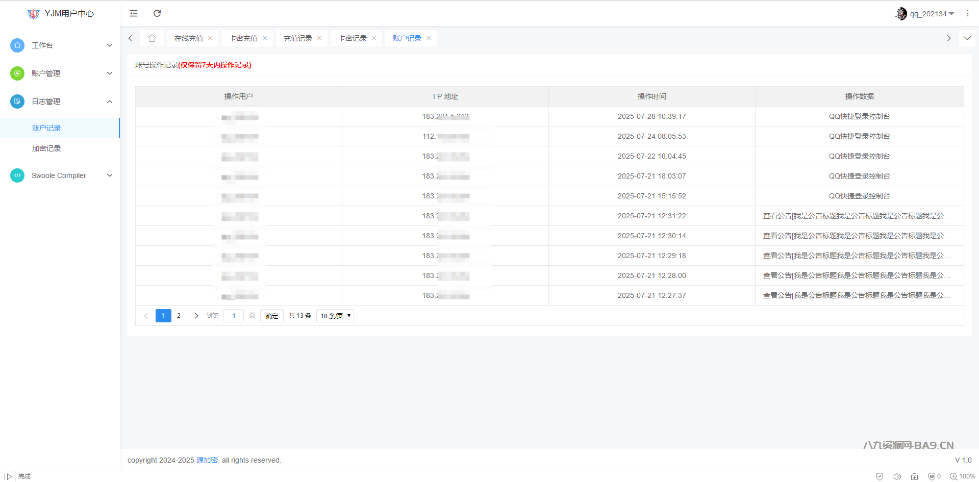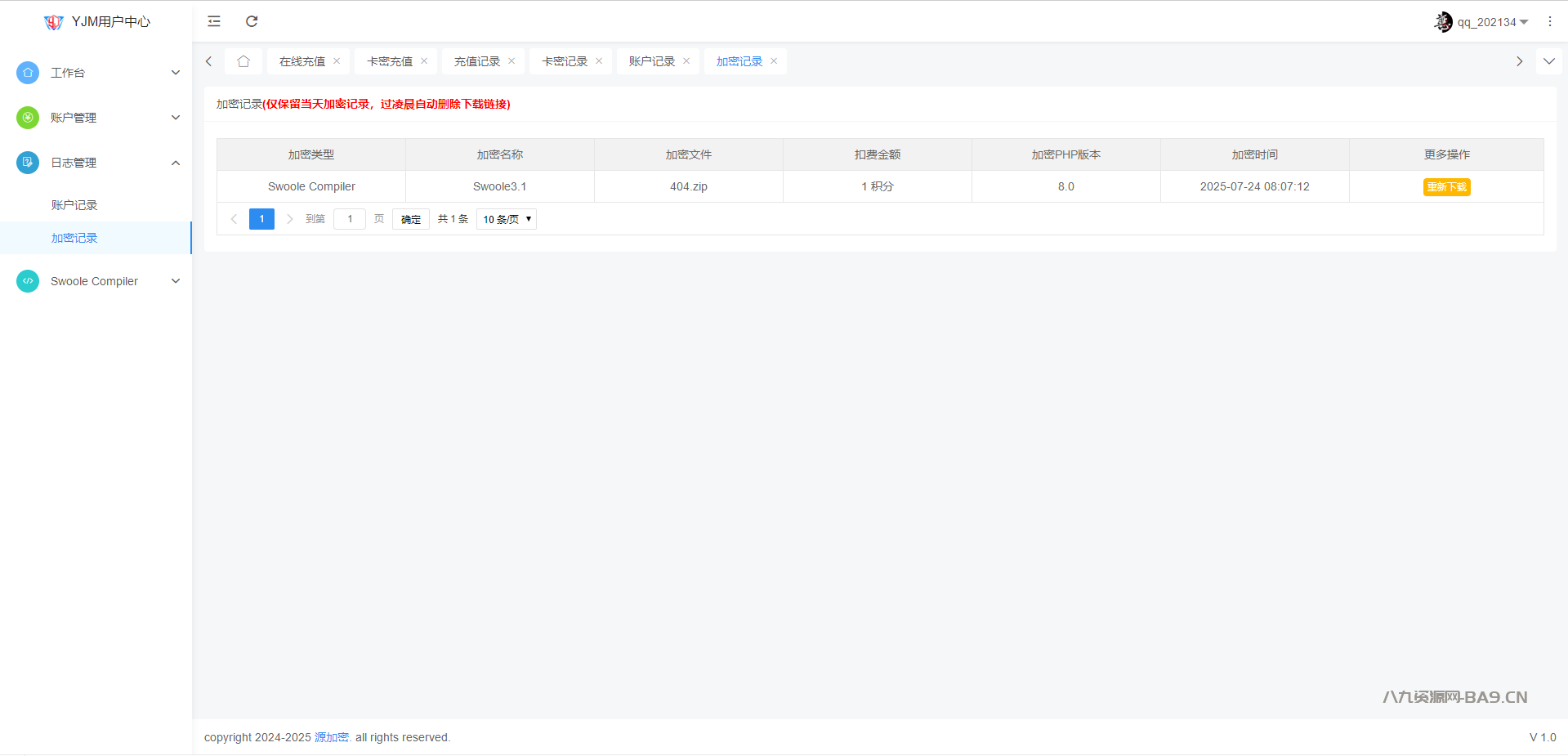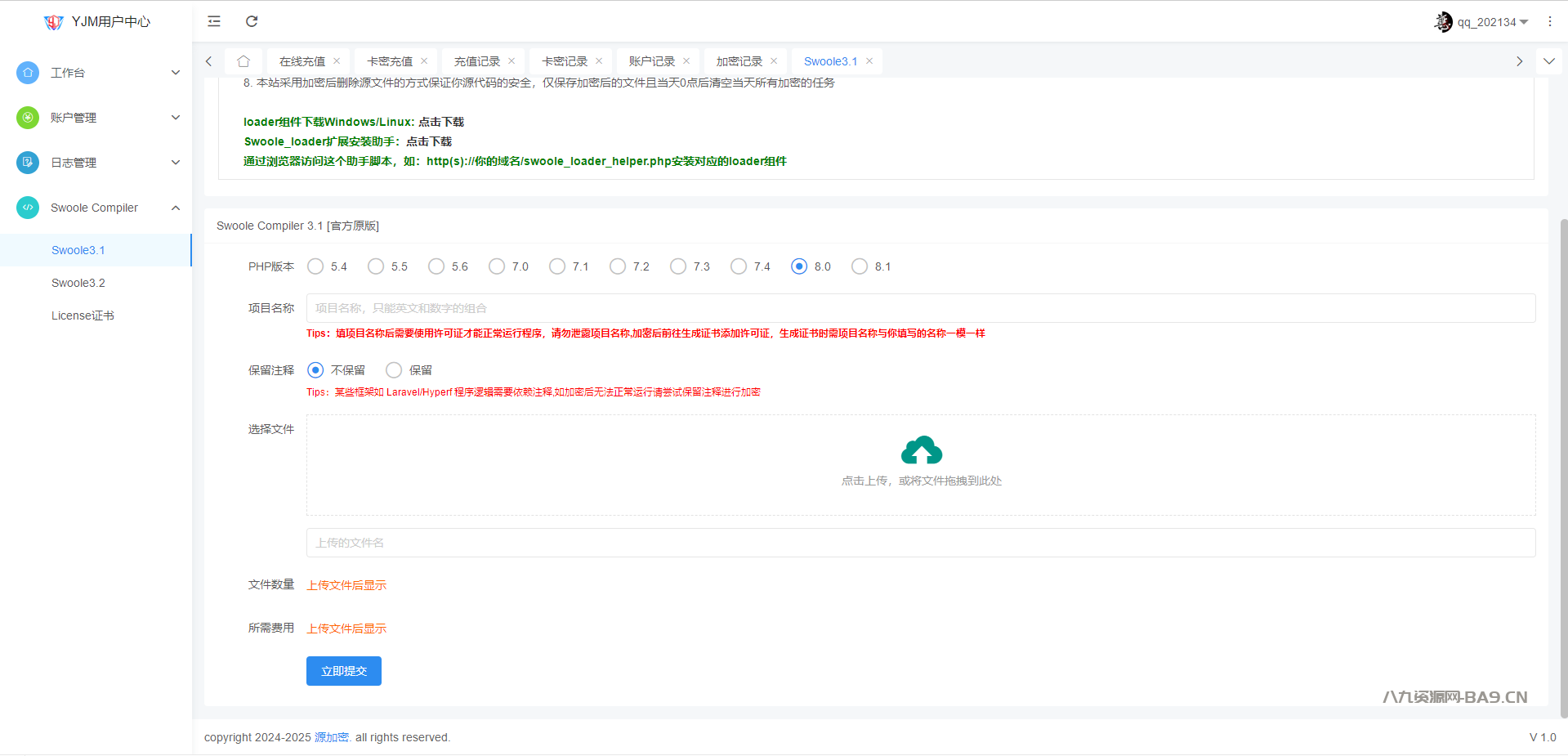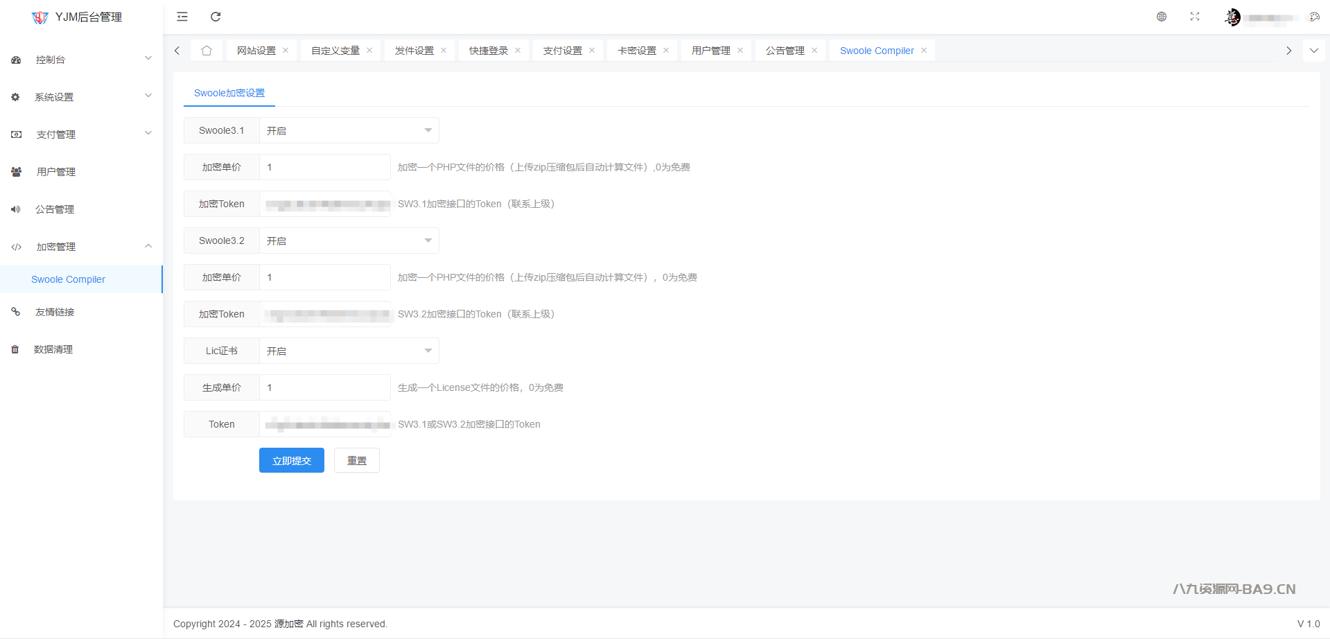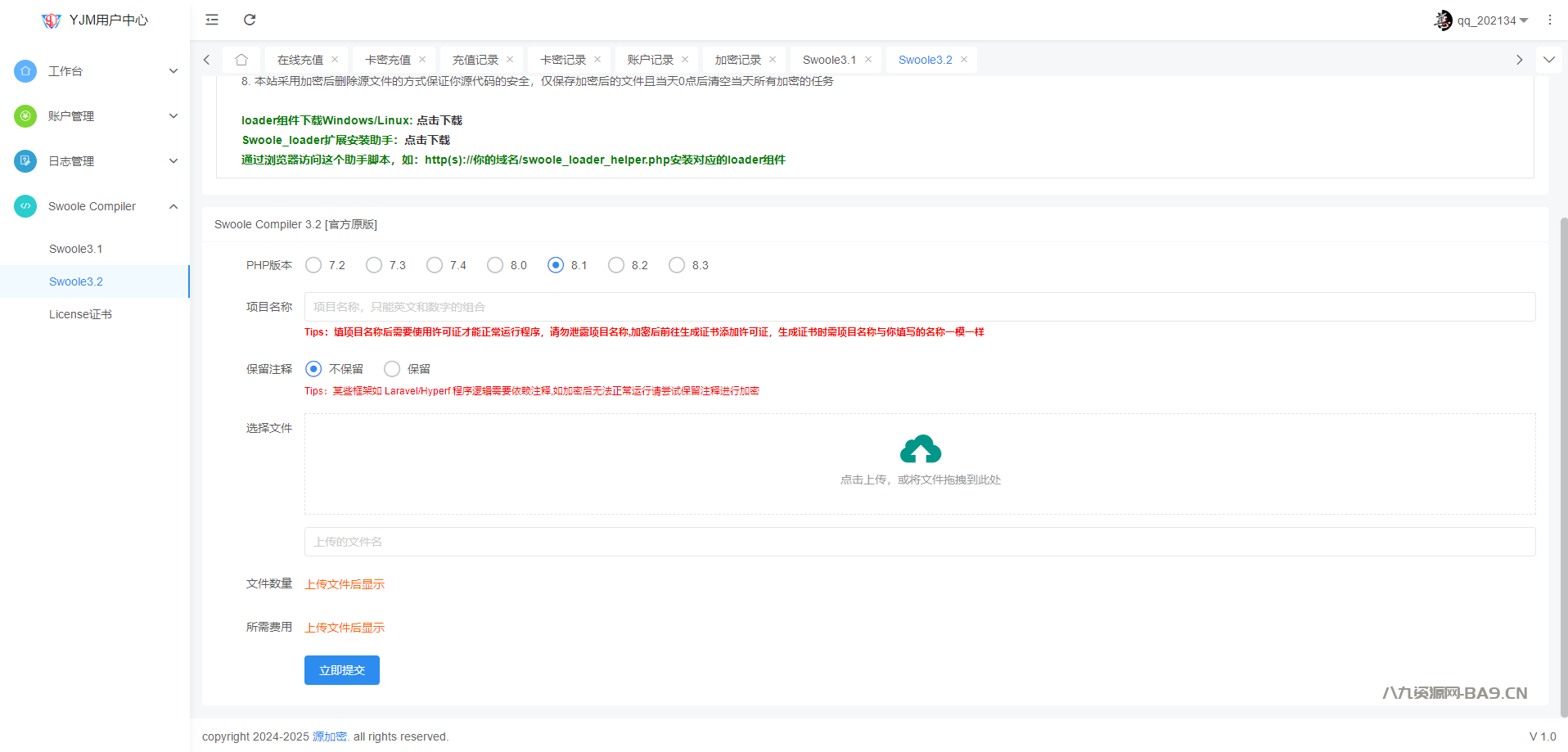 自研开发系统采用Thinkphp8.1.2 + layui 开发:源加密系统,PHP代码在线加密平台,集成了SWC3.1、SWC3.2加密器,不保证100%不被解密,但至今还未发现市面有能解开的,后续将接入更多的加密器,价格应该会迎来上涨,目前来说单一个SWC加密就已经够大家使用了,目前程序采用单域名授权机制,系统授权699,系统可永久使用,除了SWC加密器后续需要单独付费外,后续接入的SG加密,Xend加密等都是免费的,699购买加密系统后,会赠送一年的SWC加密,到期后可续费