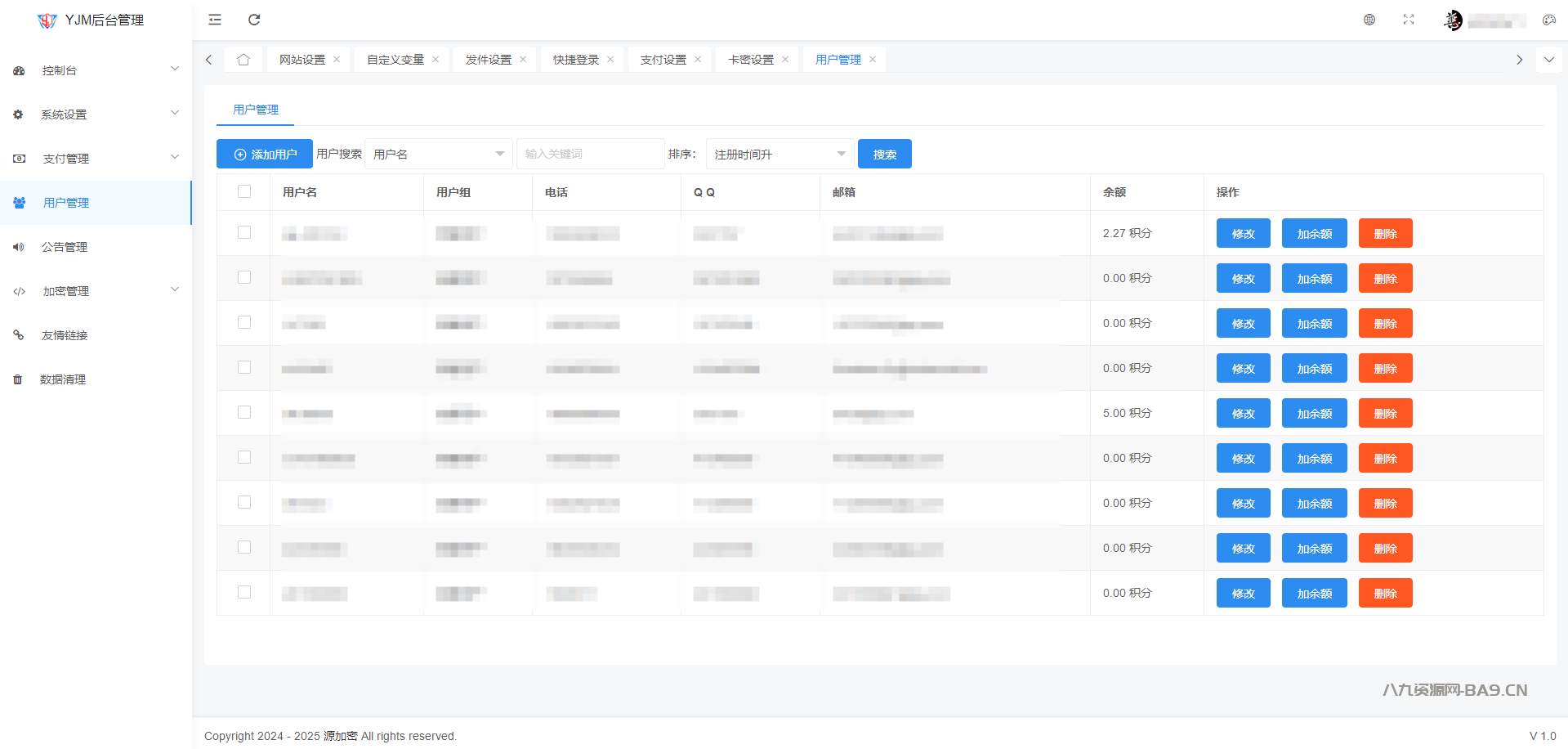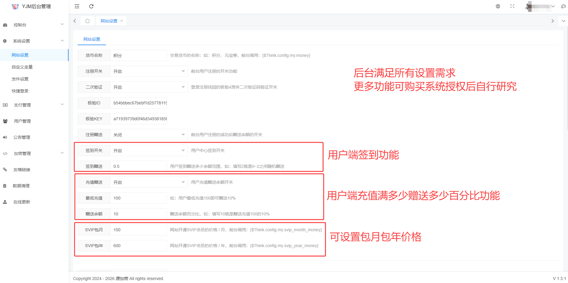 2.支持自定义开启关闭注册赠送余额以及用户中心签到赠送余额0~设置值之间的随机数保留两位小数