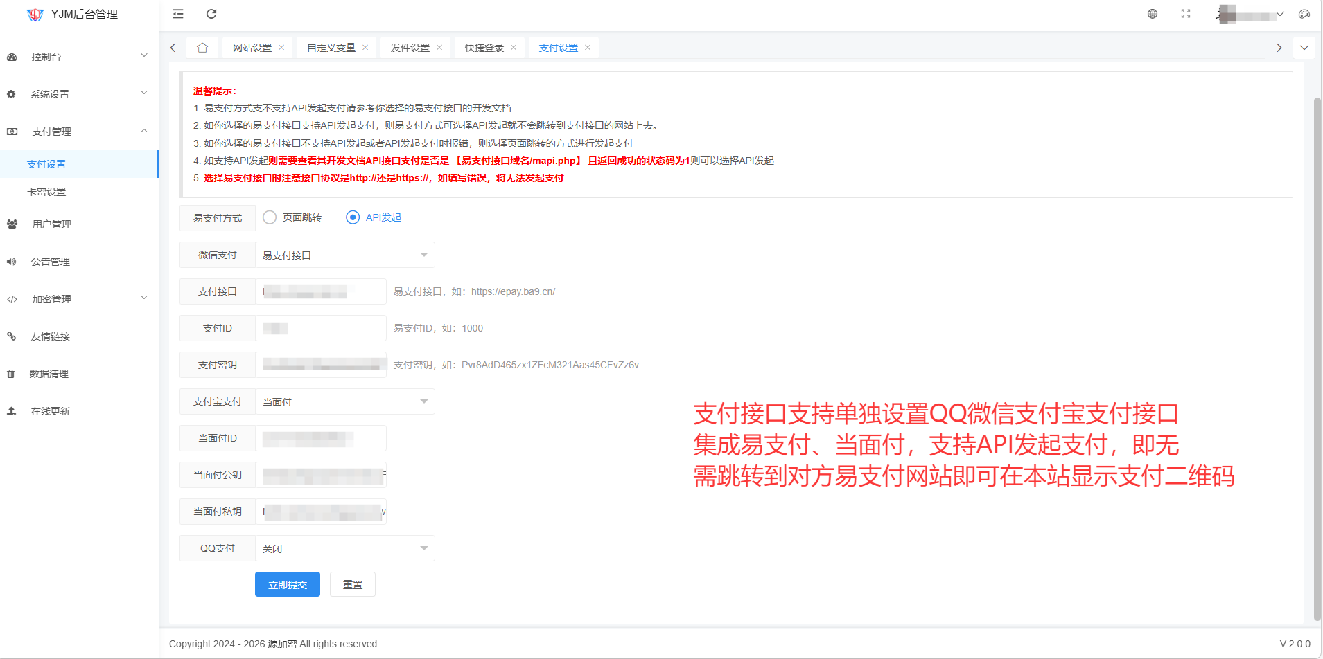 1.集成支付宝当面付、易支付跳转支付、API支付接口