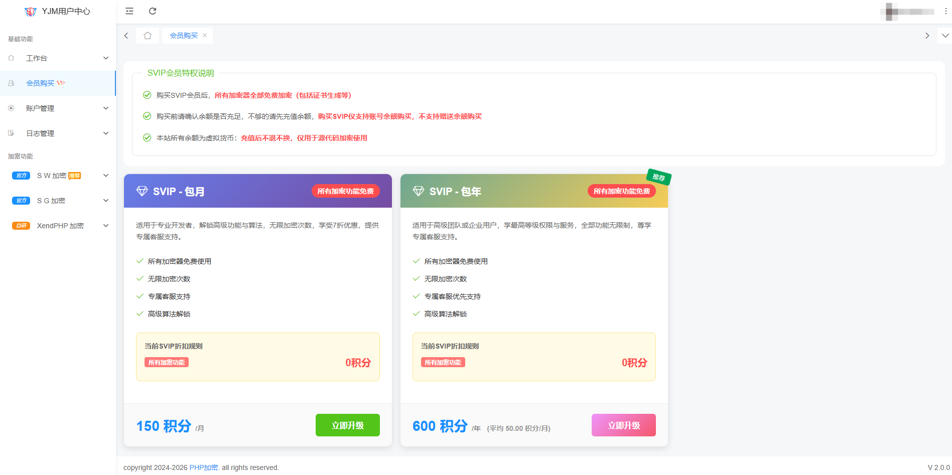 1.新增会员功能,会员价格自定义(开通会员后,所有加密均免费使用)