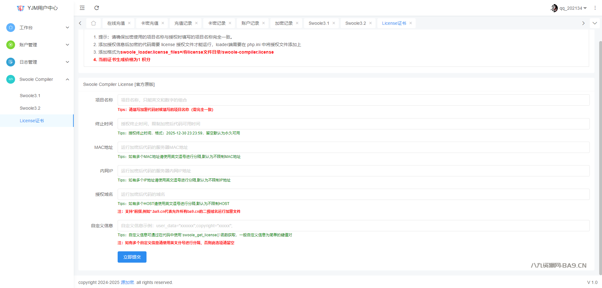 也可以一个月一个月的包月使用,注:购买加密系统的,续费为100R/月,未购买加密系统的200/月,只能在这里【encode.ba9.cn】使用,3.1和3.2均可使用