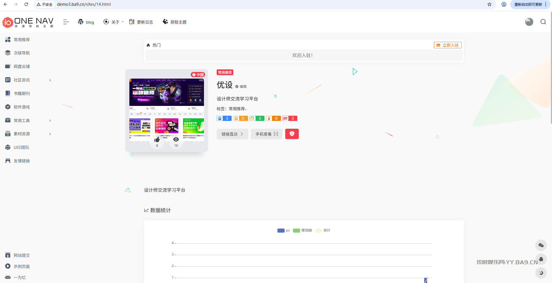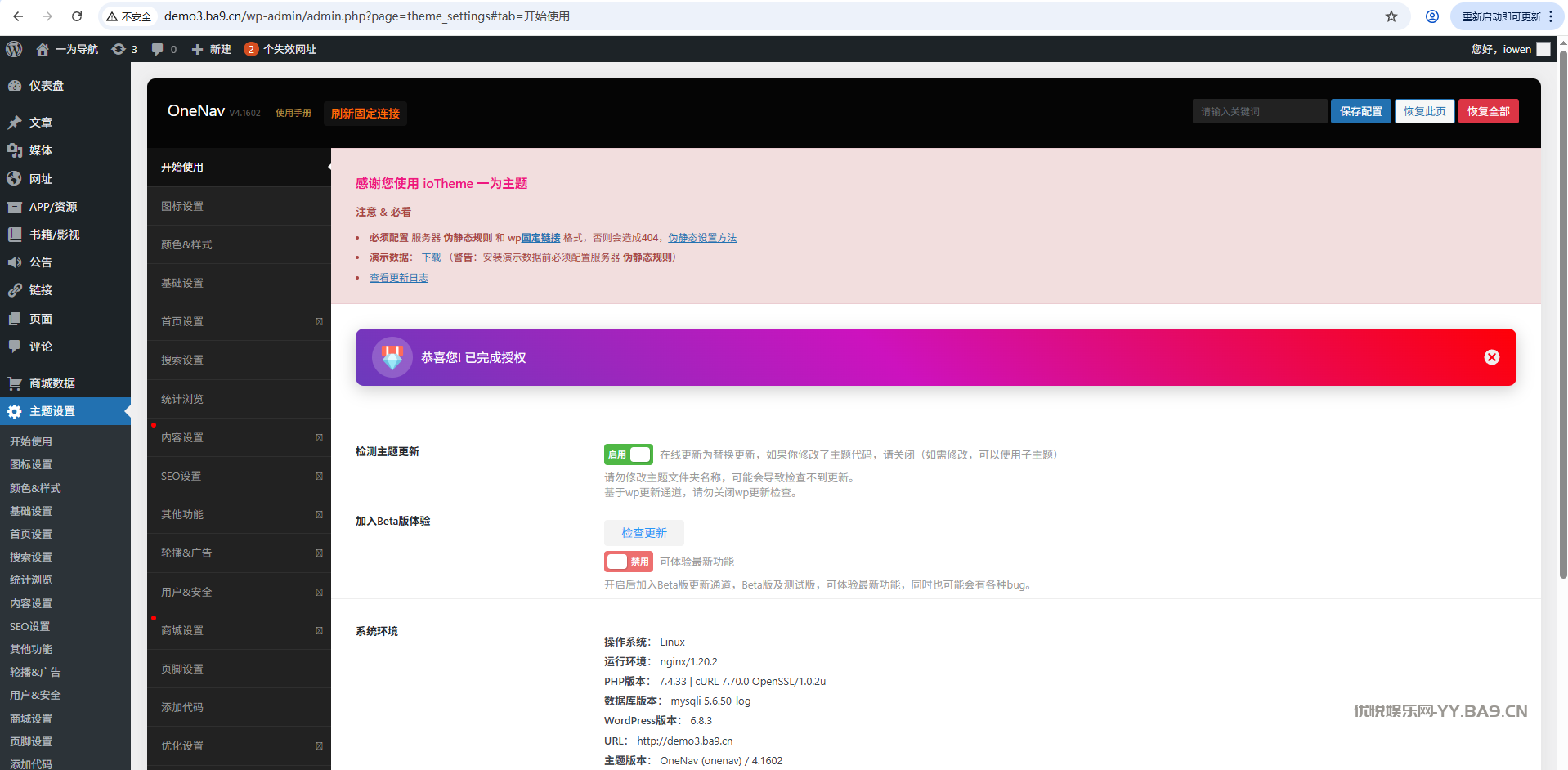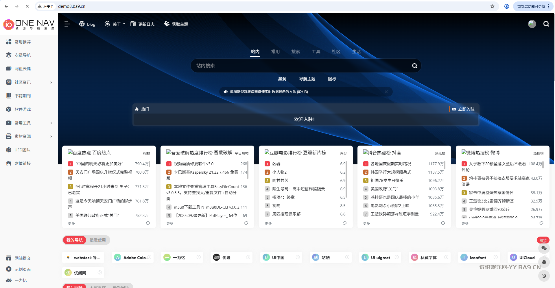 OneNav一为导航主题是WordPress中一款非常强大的集网址、资源、资讯于一体的WordPress 导航主题。